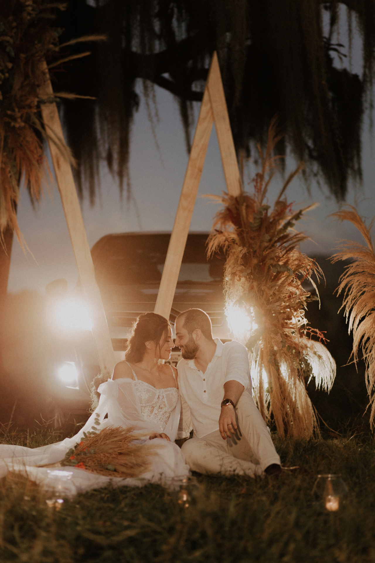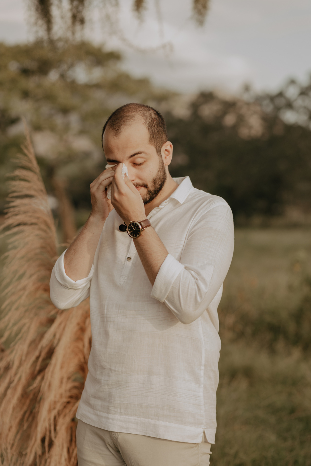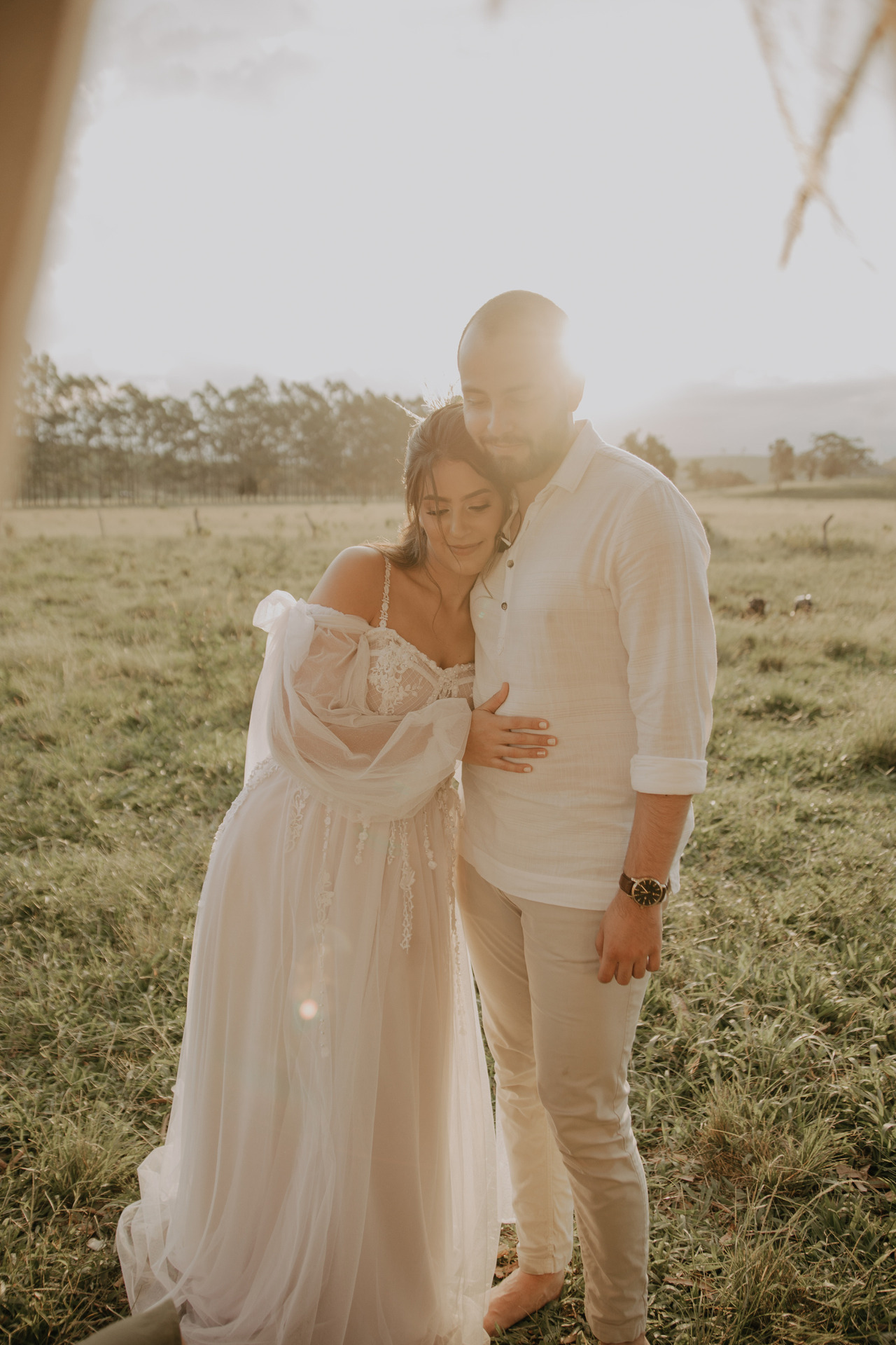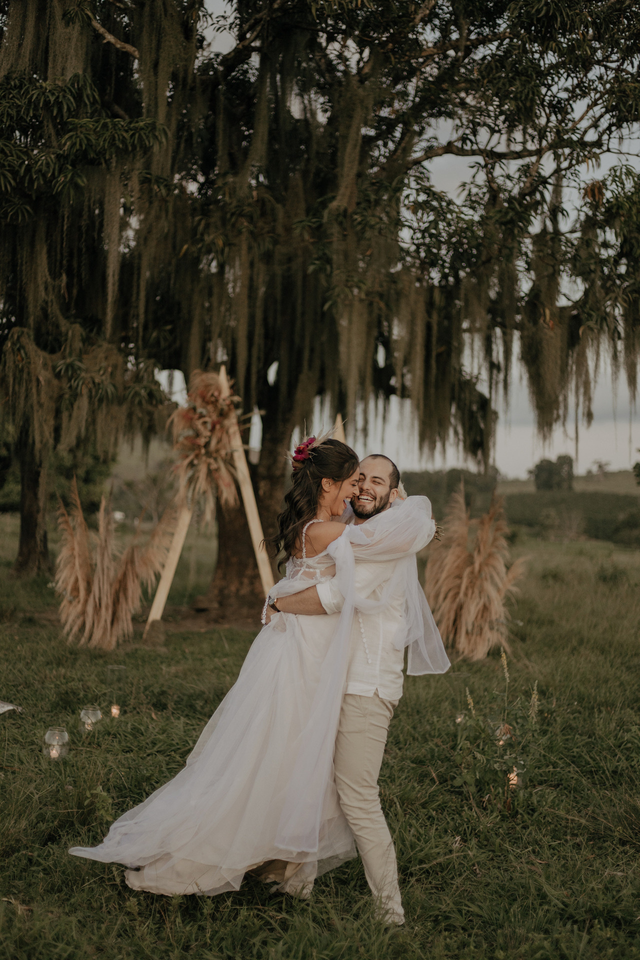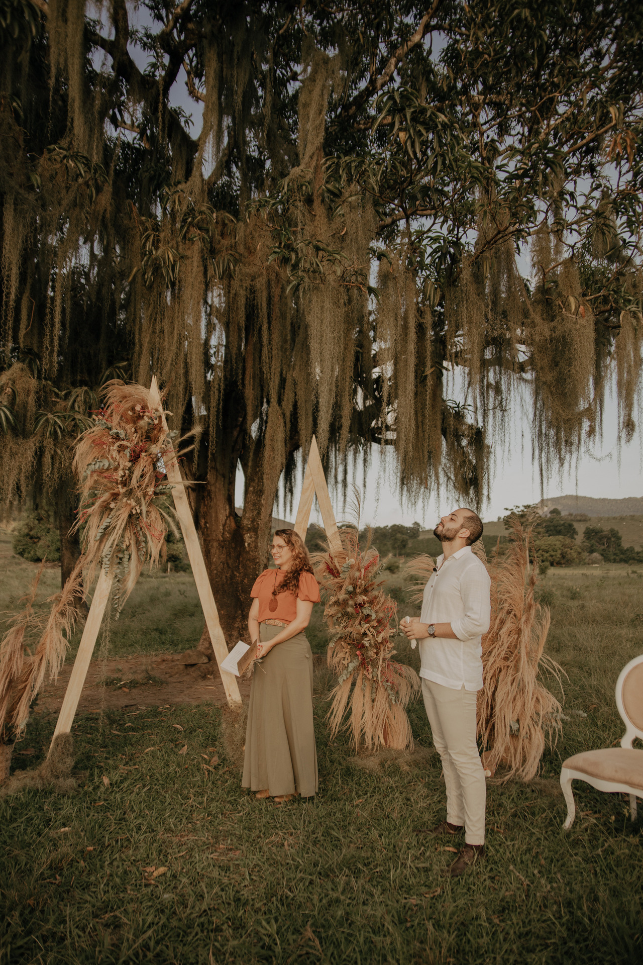 Eles escolheram se casar no campo, em baixo de uma árvore, no pôr-do-sol. E o dia estava perfeito.