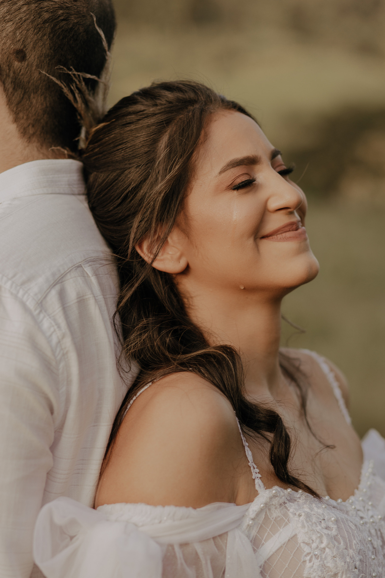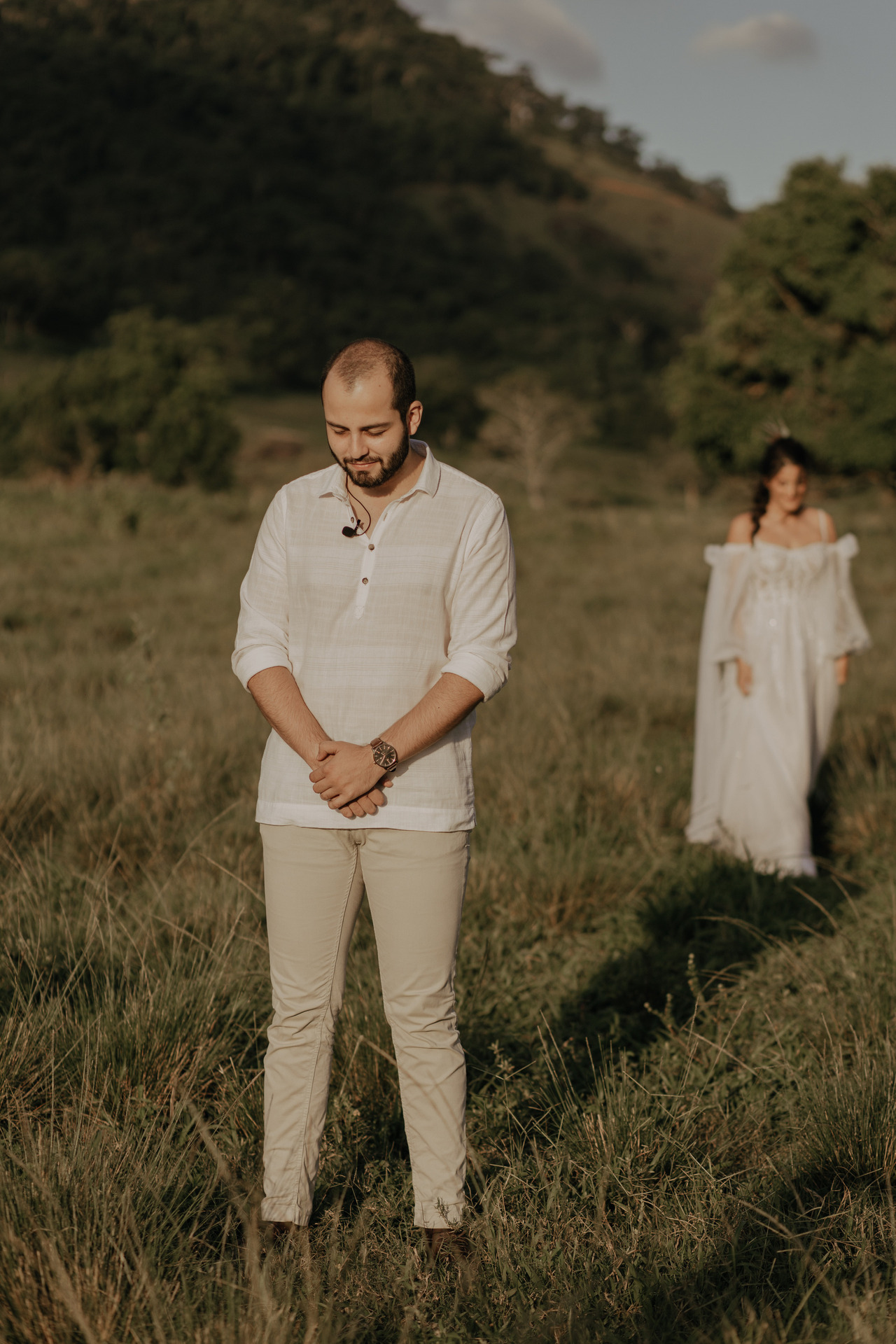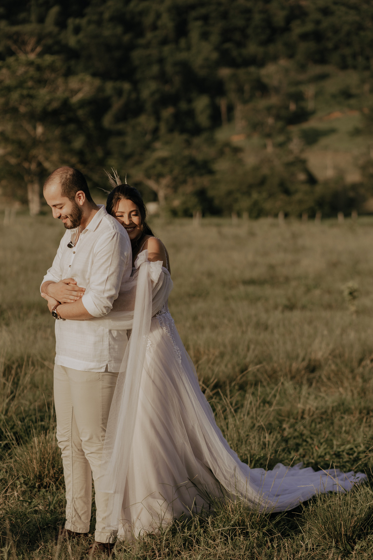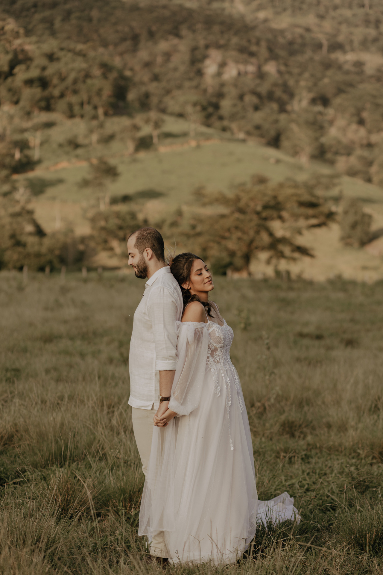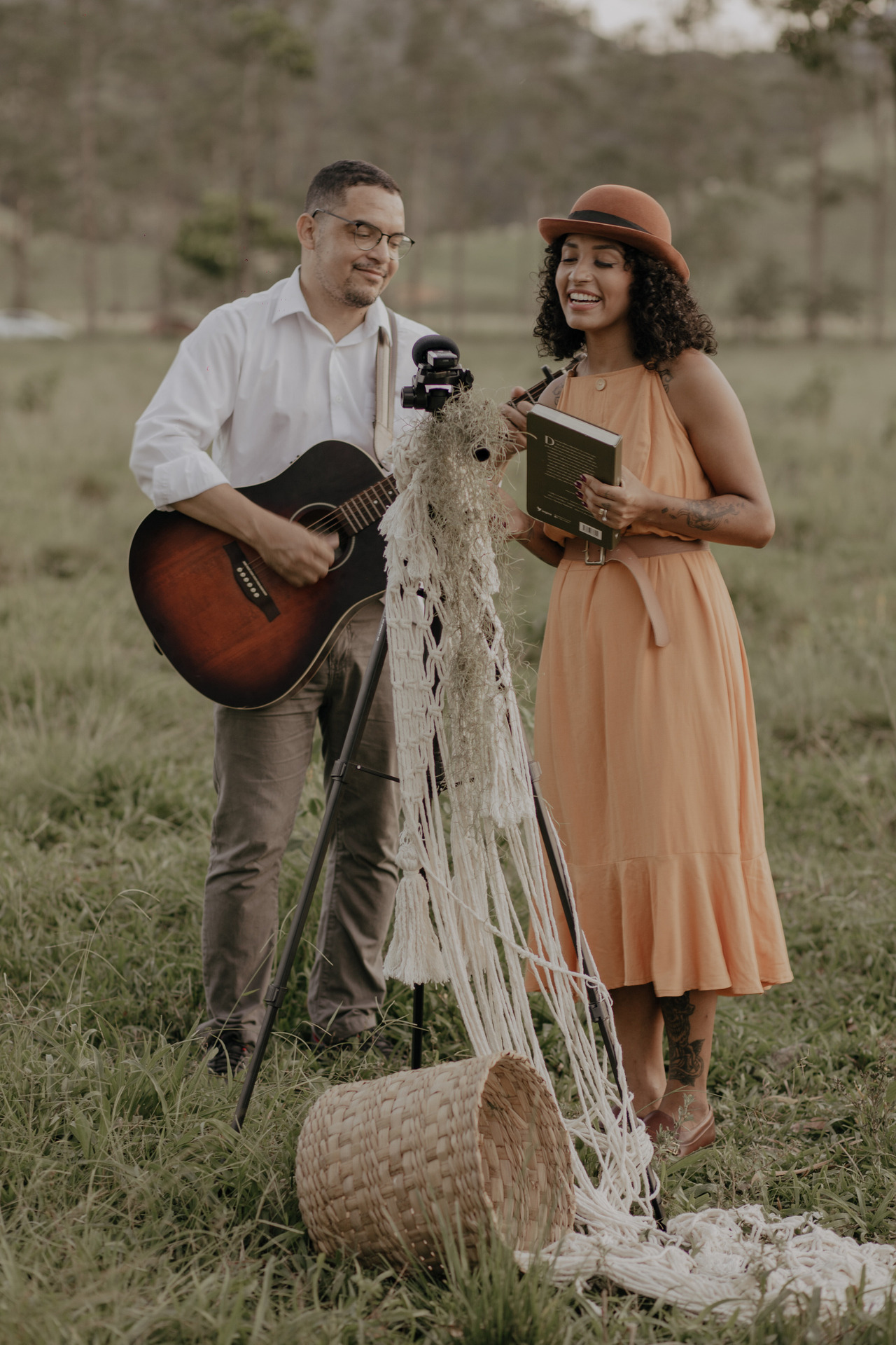 Eles escolheram se casar no campo, em baixo de uma árvore, no pôr-do-sol. E o dia estava perfeito.