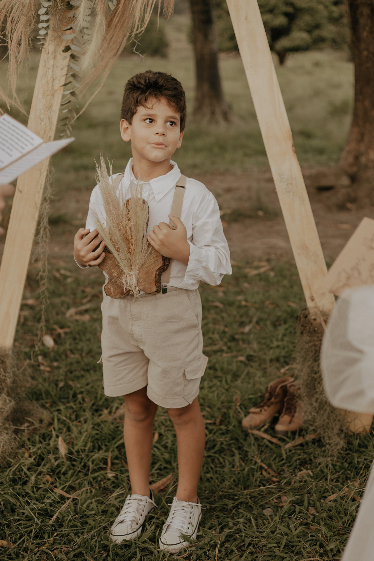 O Samuel filho da Glads entrou com as alianças em um tronco (vamos mostrar os detalhes nas fotos).